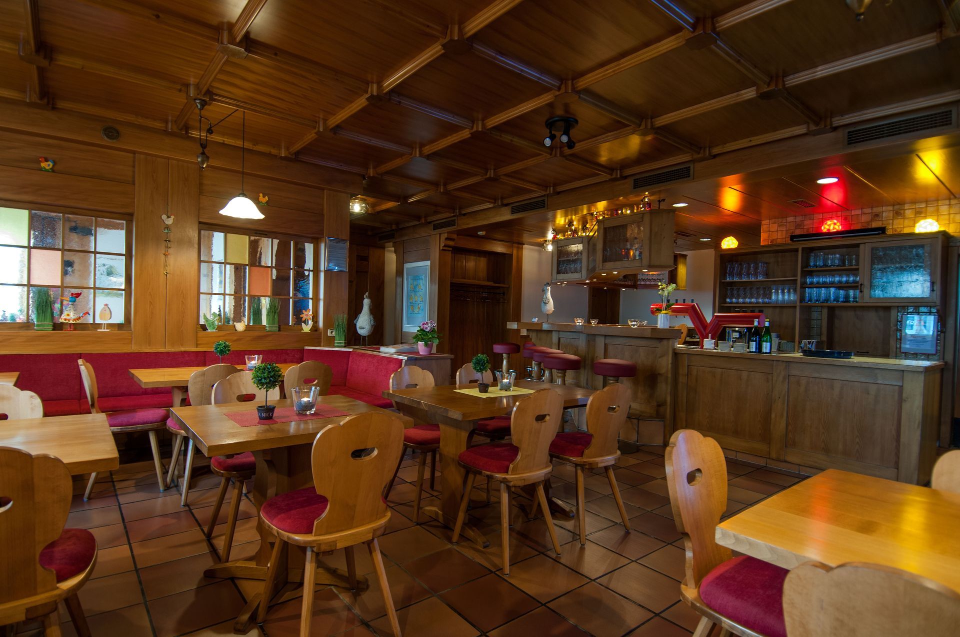Verweilen Sie in der gemütlichen, angenehmen Atmosphäre unseres Restaurants und genießen Sie mit Freunden, Familie oder Geschäftspartnern einen schönen Aufenthalt.
